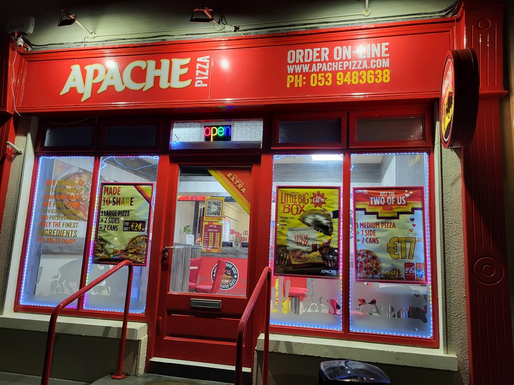 Experience the best pizza in Gorey at Apache Pizza! Order online for prompt delivery covering Gorey & nearby areas. Explore our diverse pizza menu with meal deals, fried chicken, burgers, chips, dips, desserts, and drinks. Check our website or app to view our full pizza menu, promotions and local offers! Order in-store for takeaway in Gorey, order online, or call ahead on (053) 948 3628. Our commitment to quality ensures fresh ingredients and flavorful sauces, for great pizza delivery in Gorey, delicious, hot, and ready-to-go! Place your pizza order online for delivery or collection and taste the excellence of Apache Pizza in Gorey today!